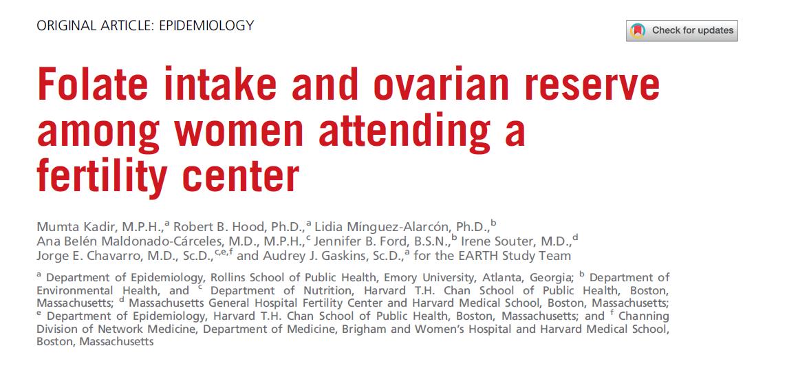 Оваа студија анализирала податоци од 552 жени кои го посетиле Центар за плодност на Општата болница во Масачусетс во САД, фокусирајќи се за поврзаноста помеѓу внесот на фолна киселина и функцијата на резерви на јајниците (мерено со број на антрални фоликули, AFC).